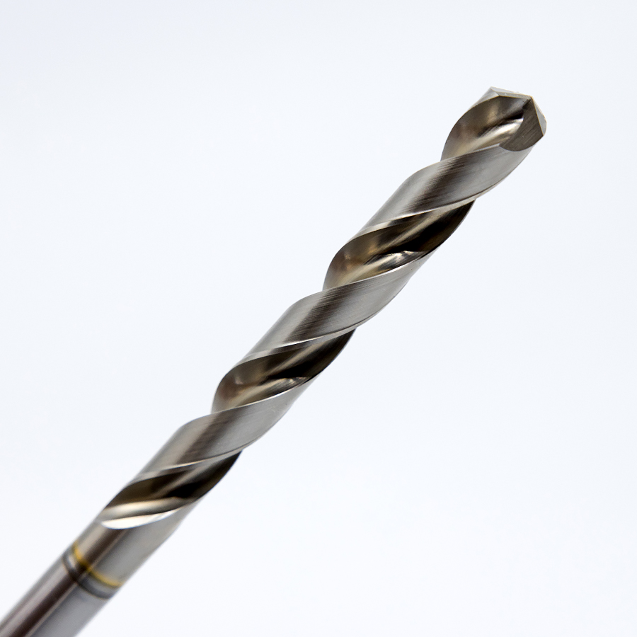 高級粉末ハイスとTiCN系コーティングにより、ハイスドリル最高峰の長寿命。2レーキ+X型シンニングを採用し、安定した加工と高い穴位置精度を実現。