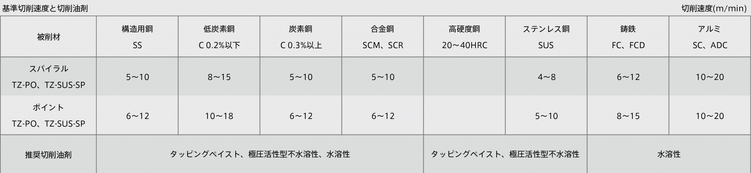 | TZ-SP M8x1.25Z | M8×1.25 | 2.5 | 12 | 33 | 6.2 | 3 | ハイス | ノンコーティング |